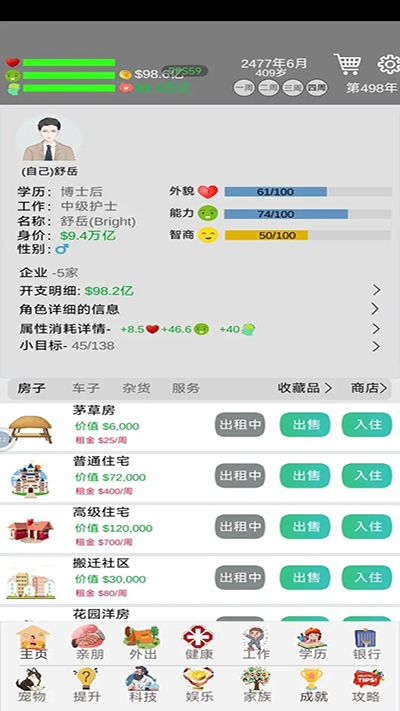 有錢(qián)就存,后面家族銀行利息提高,注意不要全砸,買(mǎi)寵物,各種服務(wù),吃飯要最好的,基本怎么都死不了;、