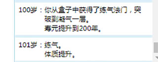 2、這個小盒子是修仙的關(guān)鍵,但是需要你努力活到一百歲才能開啟。