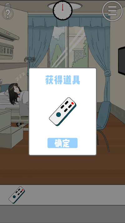 第9關(guān):床頭柜第二層得到遙控器,等時間結(jié)束,女主睡覺,遙控器給電視。