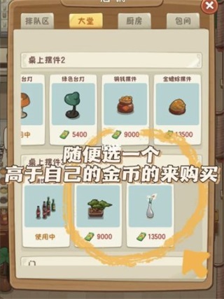 1.前期,可以跟著教程一起走,等到開包廂的時候就停止,先別打掃。把都堆積起來,打開你的菜單去升級鍋底以及銷量比較好的飲料。讓顧客喝一瓶16塊錢的雷碧不過分吧?。ㄟM價3塊)2.顧客消費高了,他買單價格就會提高,經(jīng)常會出現(xiàn)一單一千多。