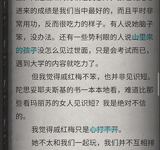 3、內(nèi)容就像是動態(tài)小說一樣,體驗感不一樣。但是游戲內(nèi)的人物角色的設(shè)計,整個的感覺是比較豐滿,刻畫的也比較像真實人物。游戲內(nèi)的故事線還是挺多的,在加上跟NPC的交互體驗感覺是比較好。