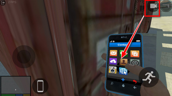 2、建議切換到第一人稱更方便看手機(jī)菜單,我們點(diǎn)擊這里手機(jī)中的通訊錄圖標(biāo)