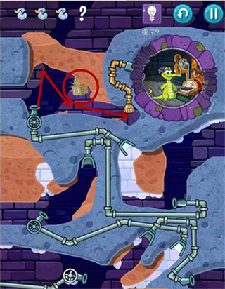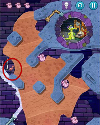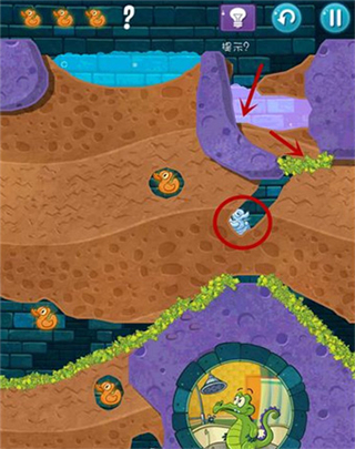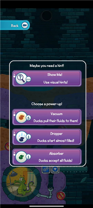 吸收器;作用是:鴨子會(huì)吸收所有液體!例如下圖:游戲顯示的是大頑固,正常的關(guān)卡是需要毒水,使用道具后清水也可以收集。以此類推:愛麗關(guān)卡同樣適用。