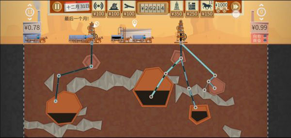 油井設(shè)備發(fā)現(xiàn)油礦后,我們就可以正式開采了,這時就需要雇傭馬車來將石油運(yùn)輸?shù)绞凸具M(jìn)行販賣,花費(fèi)150元購置馬車后我們就可以正式開始賺錢了。假設(shè)鉆井花費(fèi)400元,那么開采一座油礦的成本就是1000元,看起來似乎很多,但一切準(zhǔn)備就緒后錢就會源源不斷的上漲,所以千萬不要吝嗇,該投就得投。