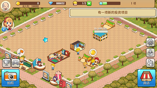 5、建造并升級各種豐富的設施以及裝飾品,包括餐廳,烘培店,服裝店,電子游戲中心等等。