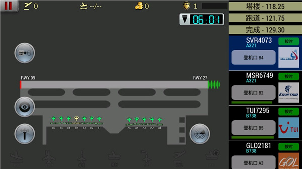 右邊是你飛機(jī)的狀態(tài)。需要降落的和需要起飛的都會自動安排在上面。最好經(jīng)常關(guān)注!