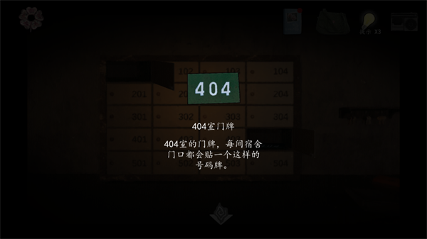 11、拿到404門牌,出值班室去查看104撕破的海報,記下數(shù)字201