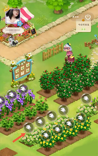 來(lái)到好友的花田,點(diǎn)擊有手套標(biāo)志的的地方,摘取鮮花。