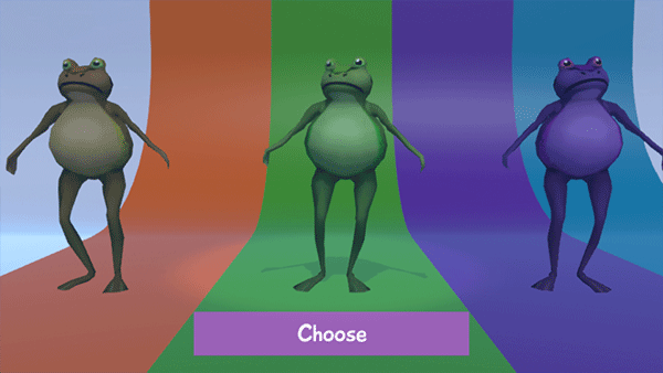 3、游玩過(guò)程中根據(jù)喜好選擇青蛙服裝,你想當(dāng)哪只青蛙呢?