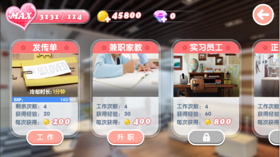 工作階段越高,掙錢越容易,體力一買,妹子手到擒來!