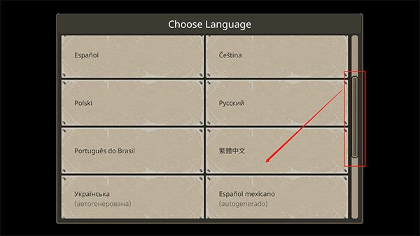 1、初次進入游戲我們需要手動選擇語言,下滑找到“繁體中文”字樣點擊即可切換