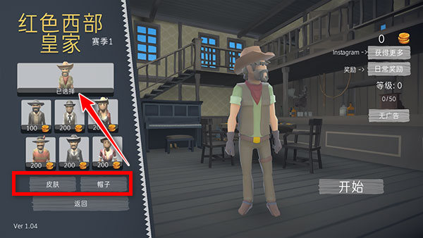 1、下載打開紅色西部皇家中文版后,無需設(shè)置默認即是中文。這里介紹下新人游玩流程,右側(cè)是獎勵領(lǐng)取,左側(cè)游戲模式可以自由切換自己想要體驗的模式。