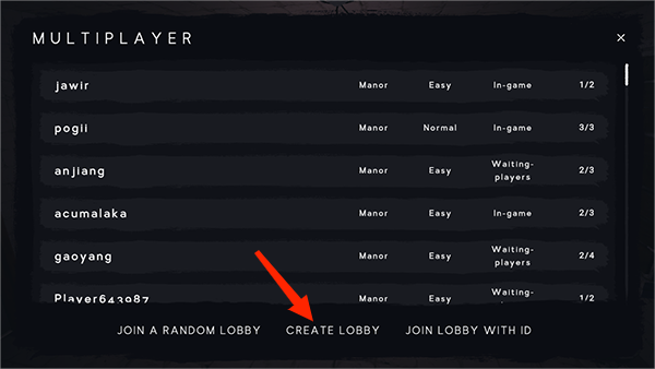 3、設(shè)定好房間名字、游戲難度和人數(shù)后點擊“CREATE A LOBBY”。即創(chuàng)建成功。