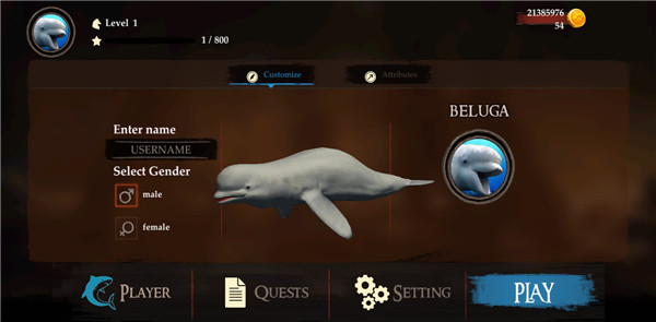 2、大家可以為白鯨取一個(gè)昵稱,選擇好性別;