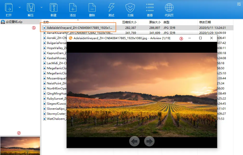 雙擊壓縮包,進(jìn)入到解壓頁(yè)面,這里面 Bandzip 會(huì)有 2 種方式預(yù)覽圖片: