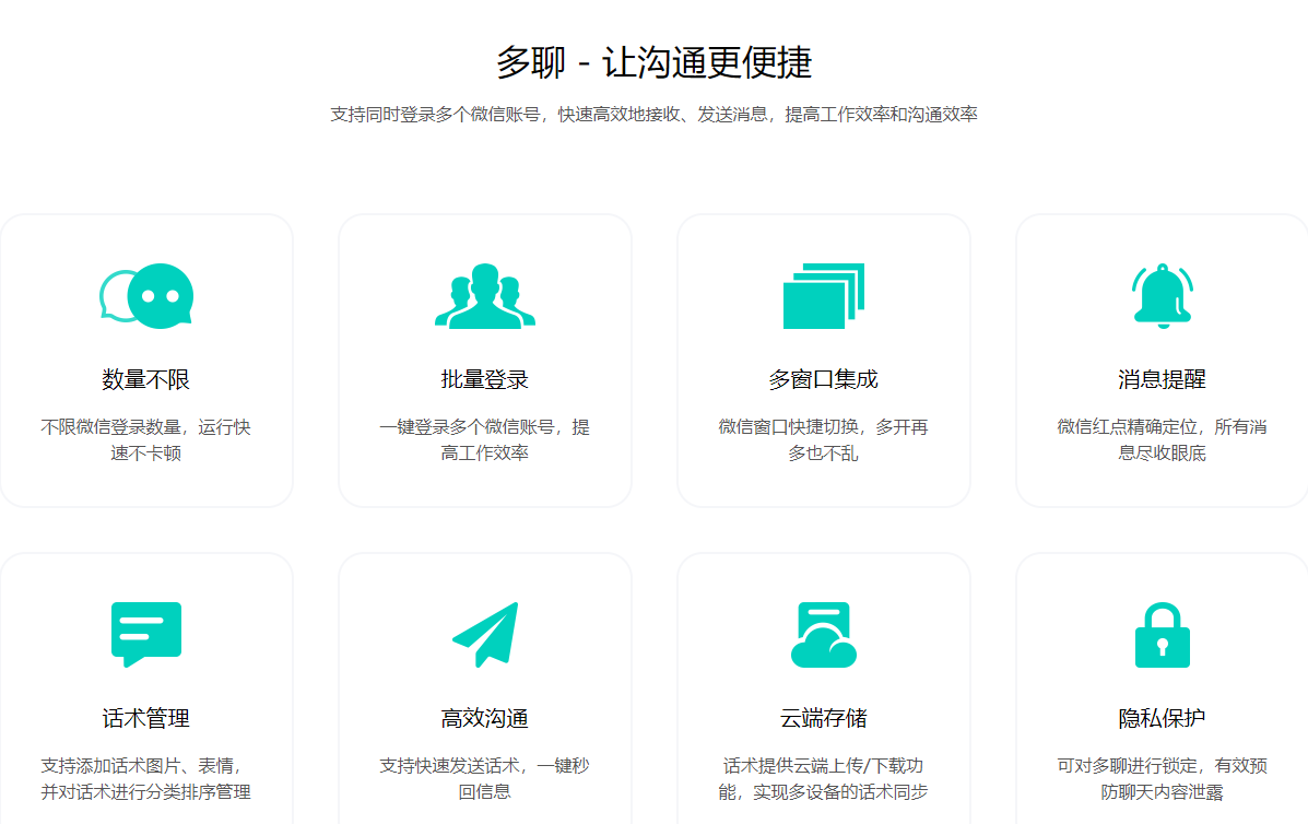 1、支持同時(shí)登錄多個(gè)微信賬號,登錄的每個(gè)賬號都能獨(dú)立接收和發(fā)送消息,并保證聊天信息的安全;