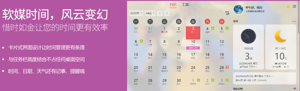 3、軟媒時(shí)間:這款組件著實(shí)讓人眼前一亮。開(kāi)啟該組件后,屏幕右下角的時(shí)間區(qū)域變寬,集中顯示了時(shí)間日期、農(nóng)歷、星期和當(dāng)前的溫度。點(diǎn)開(kāi)右下角區(qū)域,有關(guān)的日歷、天氣詳情便呈現(xiàn)出來(lái),設(shè)計(jì)非常精美。