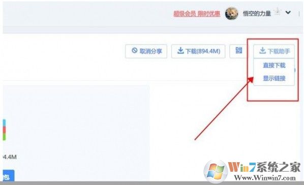 4、安裝完腳本后在百度網(wǎng)盤下載頁面,會看到右邊多了一個下載助手的按鈕,點開后有直接下載和顯示鏈接,你想用瀏覽器直接下載還是用迅雷或者qq旋風(fēng)下載就隨你便了。