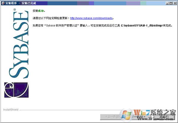 10、安裝完成,點(diǎn)擊“完成”,恭喜你,Sybase數(shù)據(jù)庫安裝成。