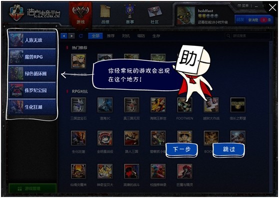 獨(dú)有個(gè)性游戲管理,自選游戲操作,玩家可以依照自己習(xí)慣的游戲設(shè)置重新編輯平臺(tái)左側(cè)最近游戲欄,即時(shí)調(diào)整最近游戲排序,以便玩家最快速的點(diǎn)擊進(jìn)入自己喜愛(ài)的游戲,免除玩家每次進(jìn)入游戲前所要尋找游戲進(jìn)入的麻煩。
