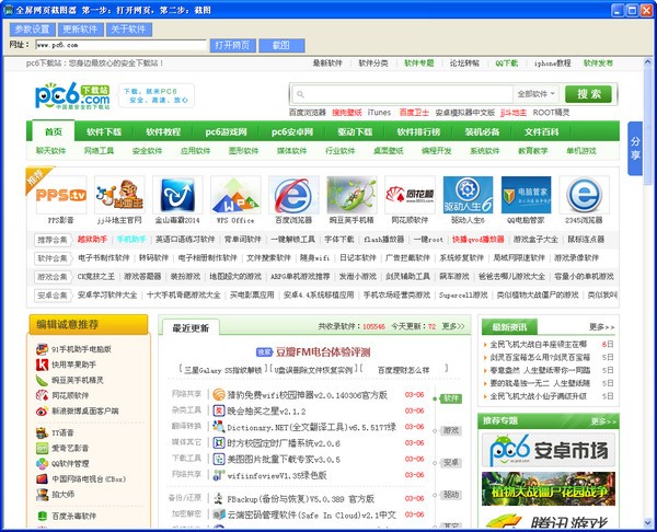 全屏網(wǎng)頁截圖器可以方便的幫助你將指定的網(wǎng)頁保存為圖片文件。你只需要先輸入要保存的網(wǎng)址,打開后,自己調(diào)整網(wǎng)頁的顯示大小。完成之后點擊“截圖”按鈕就完成了截圖操作了。