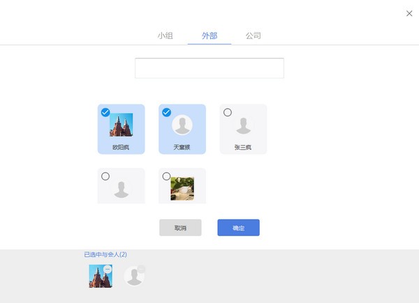 第三步:點擊[添加],勾選企業(yè)/外部/小組中的聯(lián)系人,并點擊[確認(rèn)];