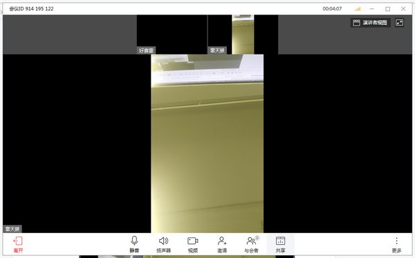 3、關(guān)掉視頻/打開視頻:全部與會人可根據(jù)點擊【視頻】按鍵,關(guān)掉視頻(別的與會人沒法見到自己影象);再度點擊該標(biāo)志打開視頻。