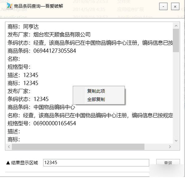 商品條碼查詢工具是吾愛論壇的朋友開發(fā)的一款實(shí)現(xiàn)中國物品編碼中心商品條碼查詢軟件,采用中國物品編碼中心查詢網(wǎng)址,讓我們可以快速的查詢條碼,免去了搜索條碼查找功能的時候不小心點(diǎn)到廣告中招的情況發(fā)生,是一款簡單方便有效的條碼查詢工具!