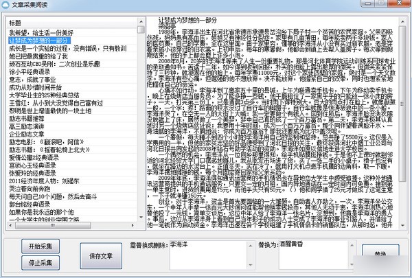 文章采集閱讀軟件采用E語(yǔ)言寫(xiě)的程序,可以采集文章,還有簡(jiǎn)單的替換和刪除文字的功能,軟件簡(jiǎn)單好用,綠色免費(fèi)!