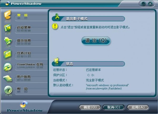 PowerShadowMaster影子系統(tǒng)是款奇特的小軟件。當你安裝并重新啟動電腦以后,電腦會類似安裝了雙系統(tǒng)一樣多出一個啟動項,選擇其中PowerShadowMaster的啟動項后,可以像原系統(tǒng)完全一樣的使用,但是你的一切操作,包括安裝程序甚至運行病毒,在重新啟動系統(tǒng)后,都是無效的。這對程序安裝測試非常有用,不會因為安裝卸載而產(chǎn)生垃圾文件!所謂影子系統(tǒng)---重啟后一切改變將不復(fù)存在!。