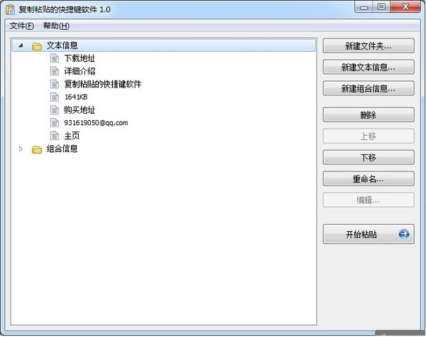 2、軟件可以建立組合信息,一鍵可將多個信息粘貼到不同的窗口。