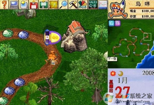 3.選項欄可以欣賞游戲的BGM音樂,并決定行走速度和是否退出、投降;自動運行是在玩家有事出去時,由電腦自動接管玩家控制的角色并繼續(xù)游戲;出售欄可將自己的土地、股票、道具、卡片出售,并由其他玩家買走;股市可購買股票盈利。