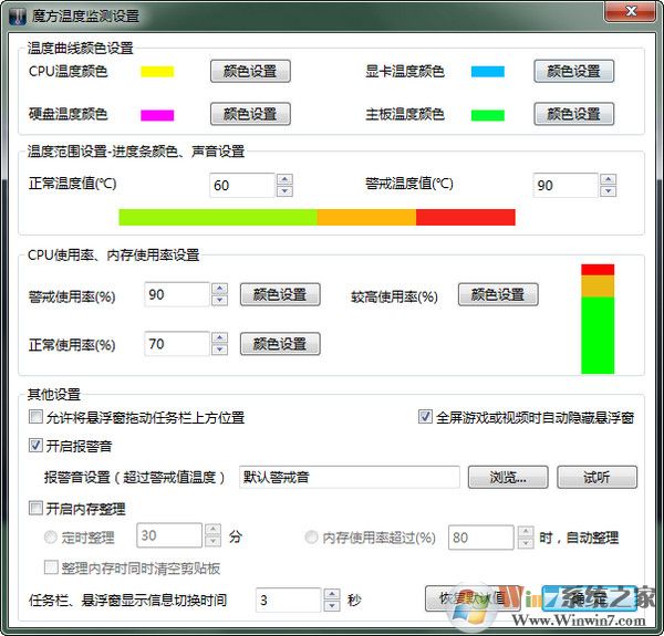 魔方溫度監(jiān)測為用戶提供了聲音報(bào)警功能,當(dāng)溫度達(dá)到警戒溫度值時(shí)會發(fā)出刺耳的聲音來警告用戶。警告溫度可以在設(shè)置中自行設(shè)置。