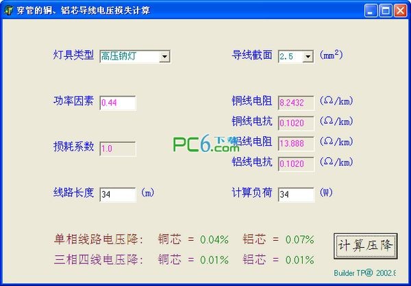 電壓降計(jì)算器軟件是一款穿管的銅、鋁芯導(dǎo)線(xiàn)電壓損失計(jì)算工具,提供單相線(xiàn)路電壓降與三相四線(xiàn)電壓降計(jì)算,你只需要輸入導(dǎo)線(xiàn)界面,和功率因素就可以計(jì)算出電壓降數(shù)據(jù),非常適合電工朋友。有需要的朋友可以下載使用。