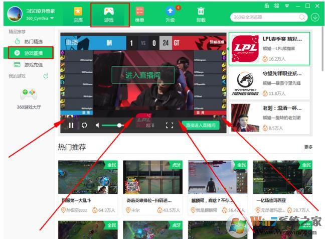 進入軟件管家-游戲分類-選擇游戲直播即可。