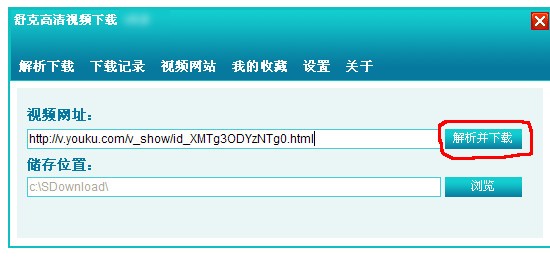 第二步:將瀏覽器地址欄中的視頻播放地址復(fù)制粘貼到軟件中,然后點(diǎn)擊旁邊的"解析并下載"按扭即可輕松開始下載。
