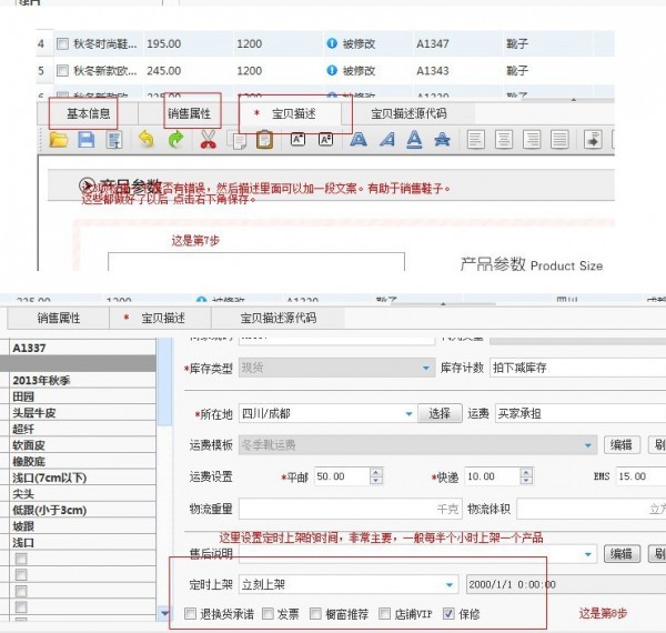 第6步 這里開始修改產(chǎn)品內(nèi)容。自己的寶貝分類 郵費模版 等等 當然最主要的是寶貝標題 和定時上下