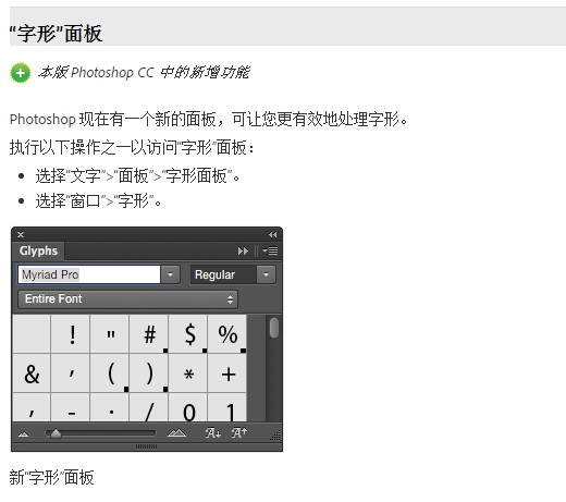 再說(shuō)下CC2015新增的“字形”,初見(jiàn)此功能我是十分激動(dòng)的,Adobe官方對(duì)這項(xiàng)功能的介紹是這樣的: