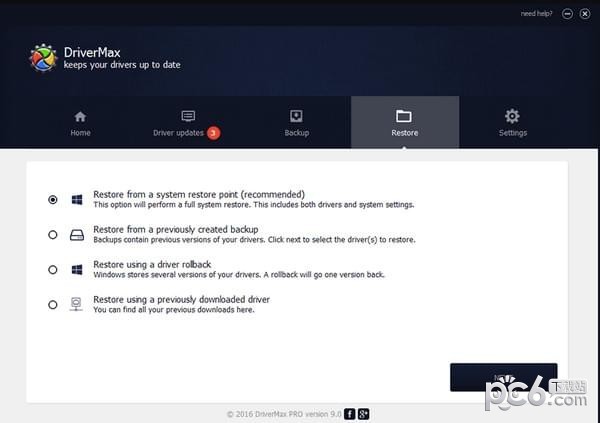 2、點擊“restore dricers from backup”就可以恢復備份的驅動,在第一個界面點擊next后,它會讓你選擇備份所在的文件夾,選好后,你需要點擊“close”按鈕(這個可能是作者的失誤)下一步,下一步界面上就會看到可以恢復的所有驅動,勾選需要恢復的(比較人性化,不是一股腦兒全恢復了),點擊“close”就可以一步步的完成驅動的恢復工作了。