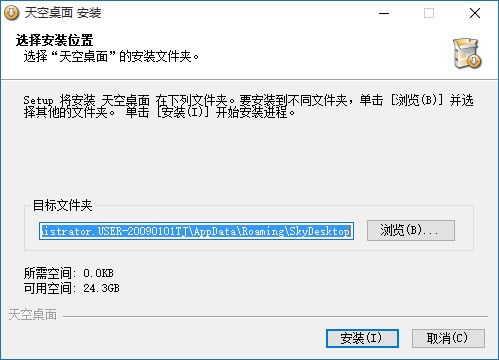1、下載解壓并安裝天空桌面