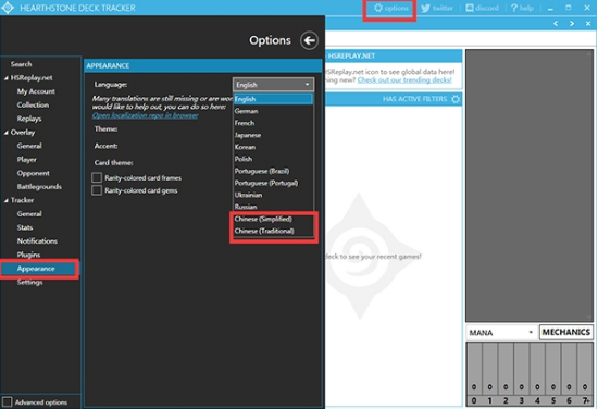 卡牌語(yǔ)言的控制是單獨(dú)的選項(xiàng),這里和HDT軟件的語(yǔ)言是可以分開(kāi)的。比如可以設(shè)置成HDT軟件是中文,但是卡牌是英文。甚至卡牌可以雙語(yǔ)顯示。