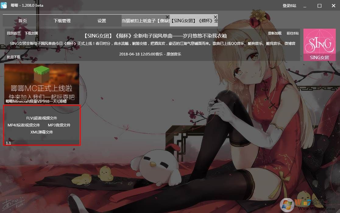 3、復(fù)制要下載的視頻網(wǎng)站到輸入框中回車,然后在下載管理中可以看到,幾種格式,我們點擊MP4就可以下載了。