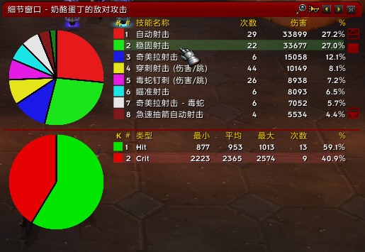 2、數(shù)據(jù)分析詳盡,除了簡單的排名外,點擊每個玩家都會顯示和這個類別相關(guān)的詳細(xì)數(shù)據(jù)情況,比如在傷害類別里,有每個玩家技能的使用比例和對象情況;打斷施法類別里,也能查到究竟玩家打斷的是哪個怪物,阻止的又是何種技能等等。