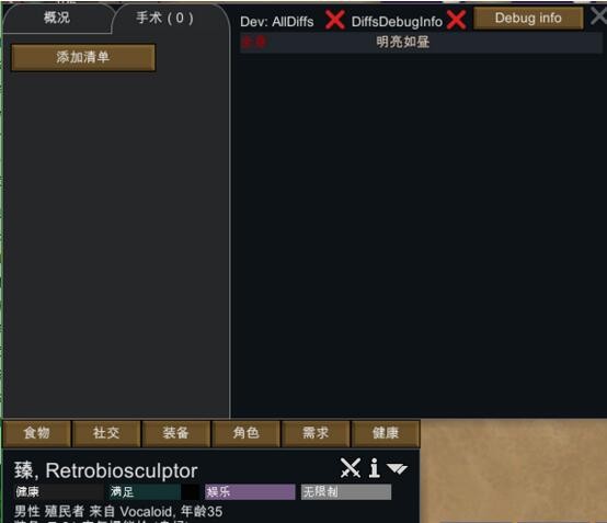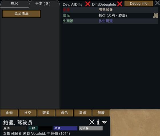 值得一提的是,人物健康欄顯示的性征只會(huì)顯示和正常人的性征有區(qū)別的那種,比如正常人都有普通的肛門,所以健康欄那里就不會(huì)顯示普通的東西,只有東西有點(diǎn)特別才會(huì)顯示在那里。通過手術(shù)欄可以看到究竟有些什么東西。