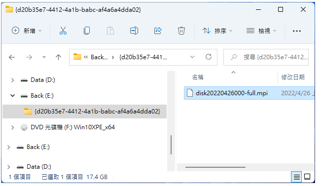 8、開(kāi)啟檔案總管,備份完成的檔案如下圖所示。