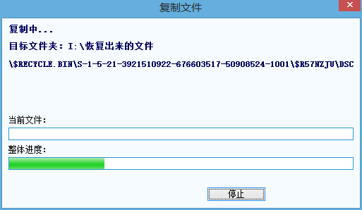 掃描結(jié)束后,勾選需要恢復(fù)的文件和文件夾,點(diǎn)擊“恢復(fù)”按鈕,將文件復(fù)制到出去。此外,勾選文件后,也可以點(diǎn)擊鼠標(biāo)右鍵,通過右鍵菜單復(fù)制文件,具體步驟請(qǐng)看“通過右鍵菜單復(fù)制文件”。 注意:為了防止二次破壞,在復(fù)制文件時(shí),請(qǐng)不要將文件復(fù)制到正在恢復(fù)數(shù)據(jù)或是其他需要恢復(fù)數(shù)據(jù)的分區(qū)。