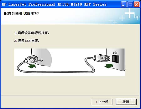 2.在“動(dòng)畫入門指南”窗口中,請(qǐng)?jiān)?ldquo;HP LaserJet Pro M1130 MFP 系列”下,點(diǎn)擊“USB 安裝”按鈕。如圖USB 安裝所示: