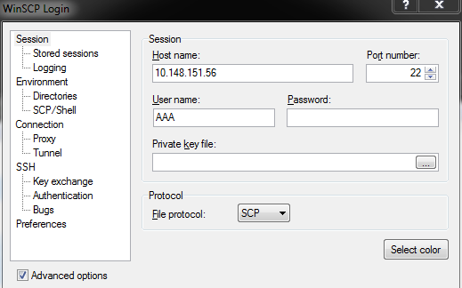 1、在主頁(yè)下載winscp后,安裝后運(yùn)行"C:\Program Files (x86)\WinSCP\WinSCP.exe",輸入?yún)?shù)如下: