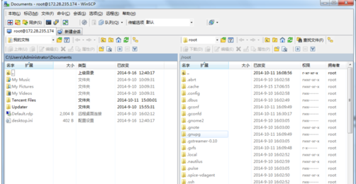 2、輸入密碼后打開(kāi)WinSCP的窗口,如下: (此時(shí)已經(jīng)可以進(jìn)行文件的copy,delete,rename,folder sync等操作了)