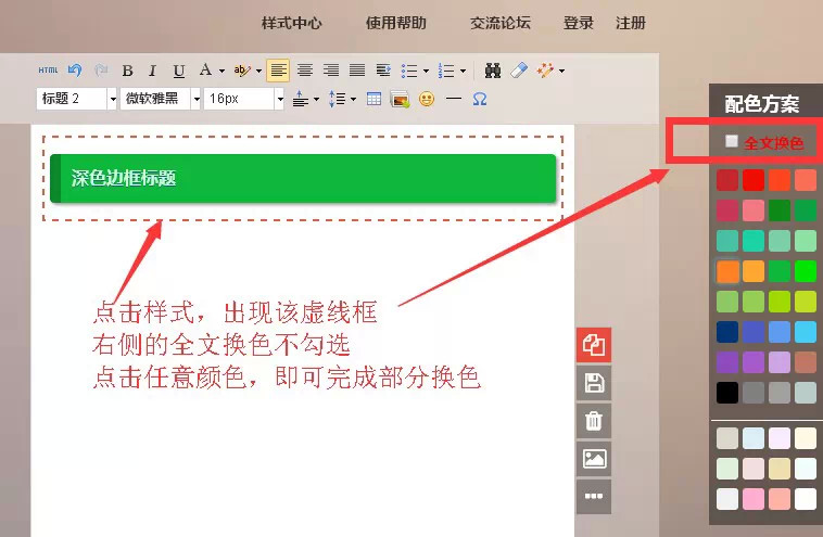 3. 編輯框中所有內(nèi)容的顏色則全部換色(注:文字顏色需使用【工具欄中】字體顏色來(lái)?yè)Q色)